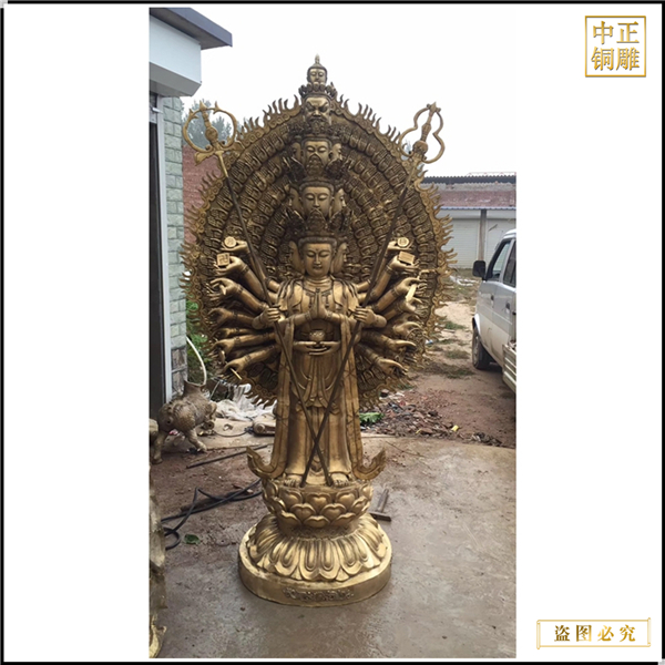 中正銅雕-貼金千手觀音菩薩銅像鑄造、貼金千手觀音菩薩銅像鑄造價格、貼金千手觀音菩薩銅像鑄造廠家,我公司實行現(xiàn)代化企業(yè)管理,成功導入TPS生產(chǎn)管理系統(tǒng),形成集塑制泥塑模型、泥稿后翻制模具、翻制石膏模型、工藝師加工制作、營銷為一體化作業(yè)的生產(chǎn)線,加上先進的銅雕加工設備,優(yōu)秀的美術(shù)設計師,雕刻經(jīng)驗豐富的制作人員。