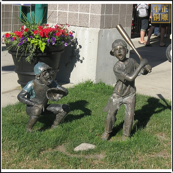 小孩打棒球人物銅雕塑